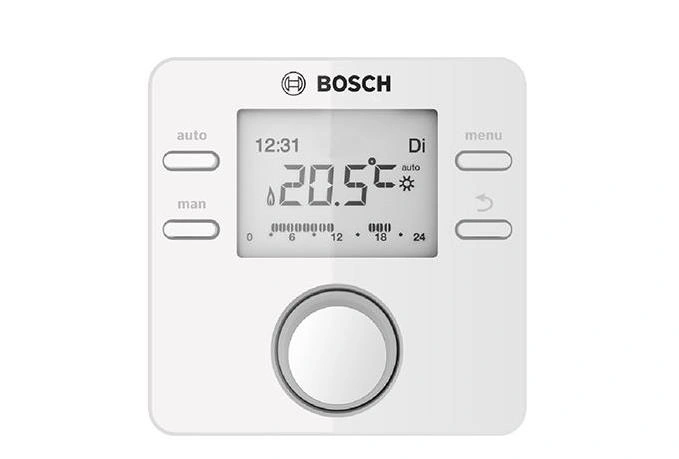 • Termostat CW100 je Boschov regulator s tjednim programom, vođen vanjskom temperaturom